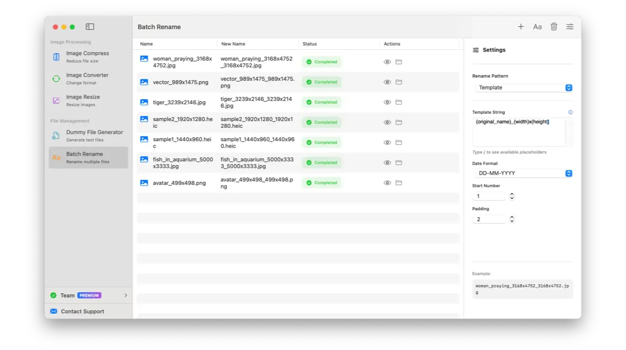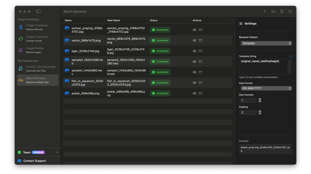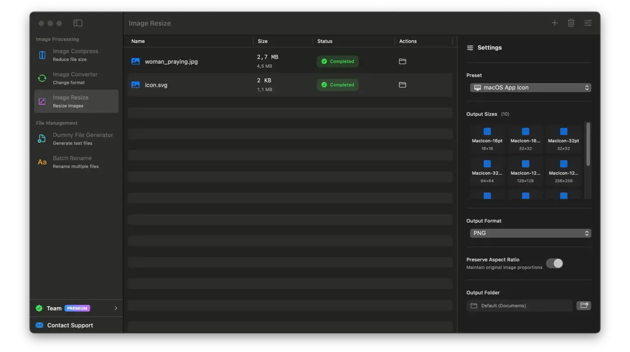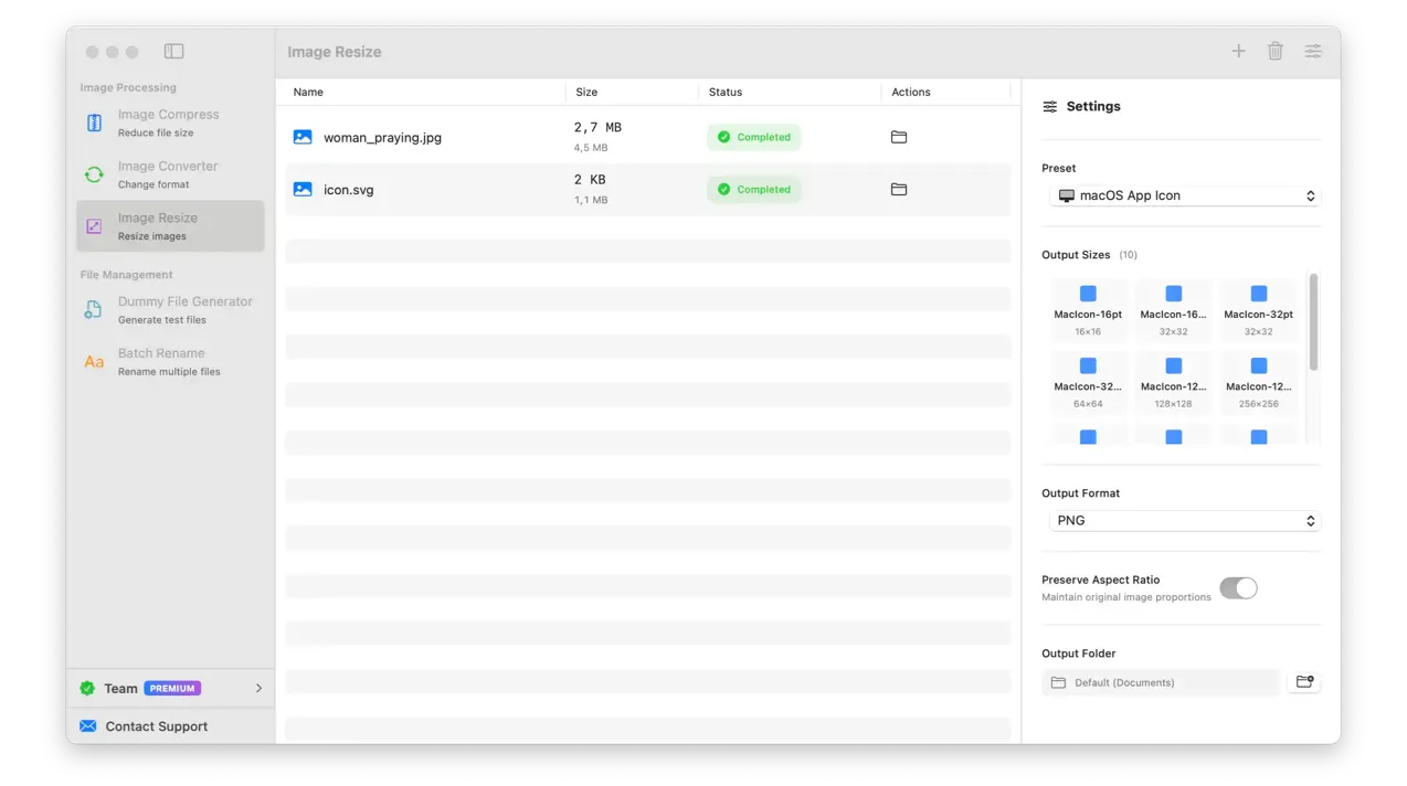 AssetUtils is a native macOS application that simplifies your workflow with batch image processing, file renaming, and dummy file generation. All processing happens locally on your Mac.