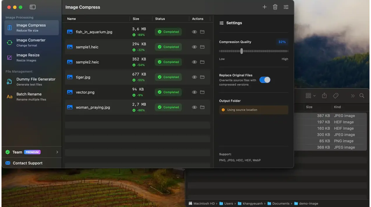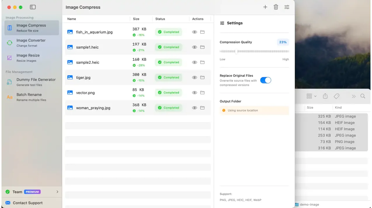 Batch compress hundreds of images with industry-leading algorithms. Reduce file sizes by up to 80% while maintaining visual quality. Perfect for web optimization and storage savings.